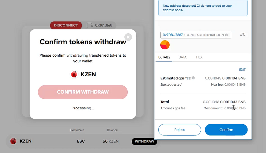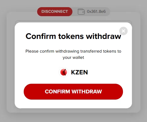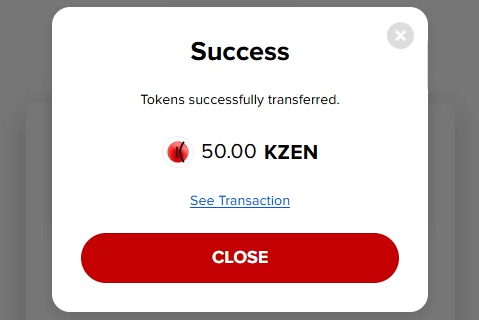 Congratulations! You’ve just withdrawn KZEN tokens to your wallet.