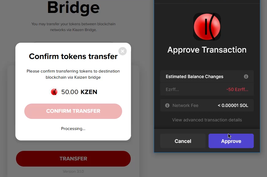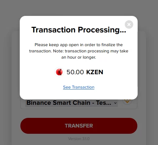 Congratulations! You’ve just sent KZEN tokens to the target network.