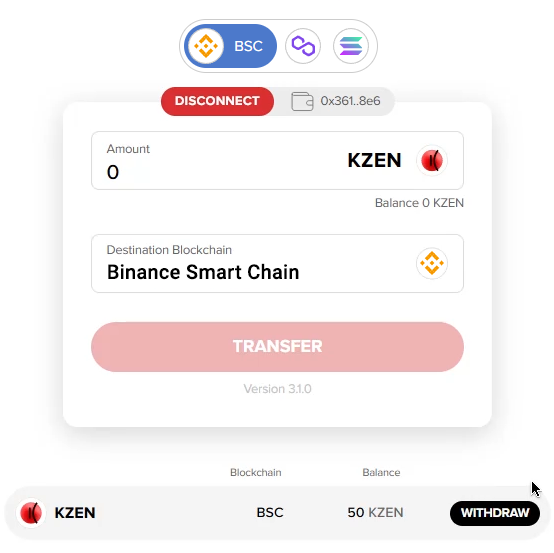 On the Bridge page, you can see that your KZEN tokens have been transferred to the BSC network: