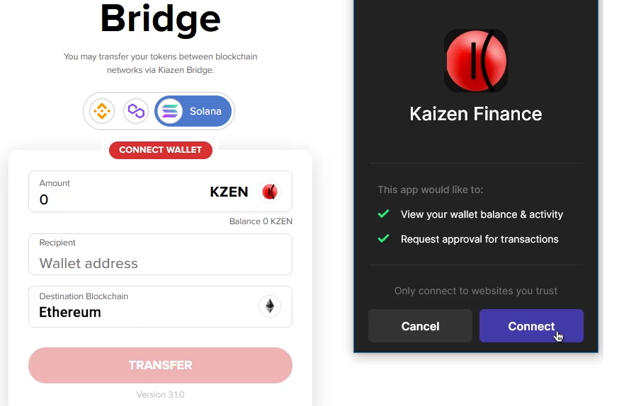 1. Go to https://kaizen.finance/bridge.